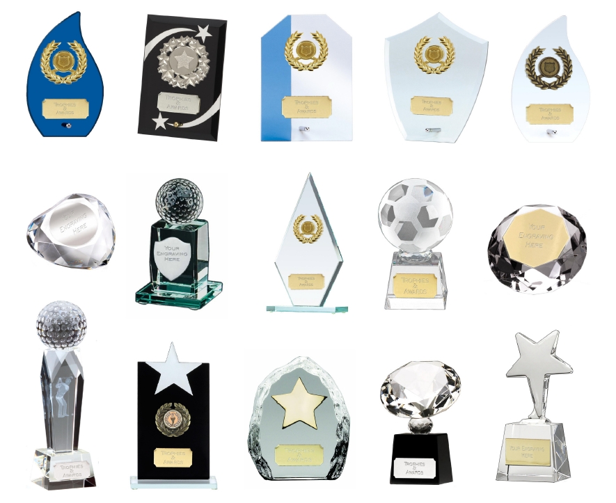 A wide range of premium and economy glass trophies and glassware available.